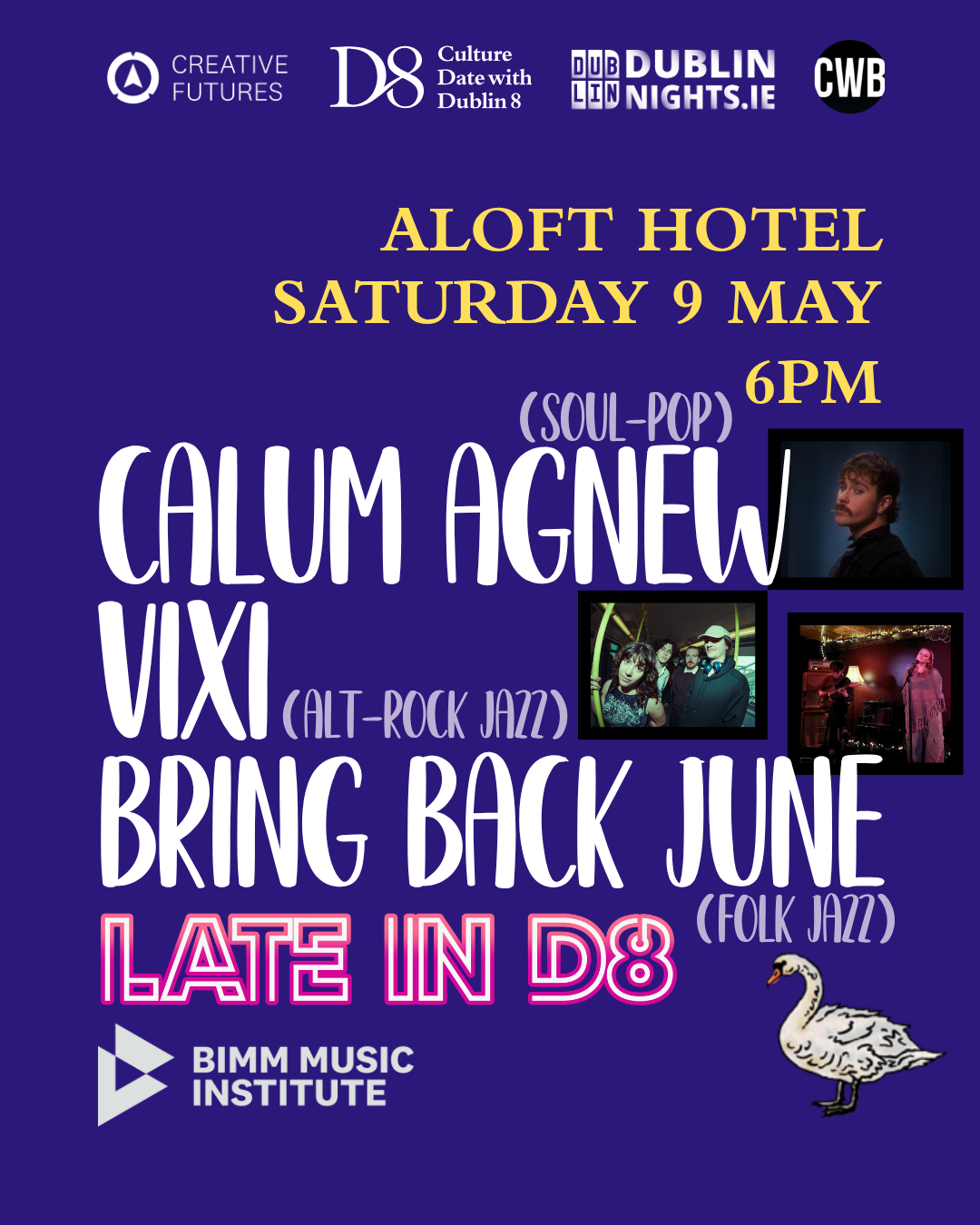 Ease into the evening with a soulful and genre-blending showcase at Aloft Dublin City Hotel on Friday 8 May from 6pm–8pm. Part of the BIMM Dublin showcase series, this early evening session brings together three exciting emerging acts, each offering a distinct sound and atmosphere.