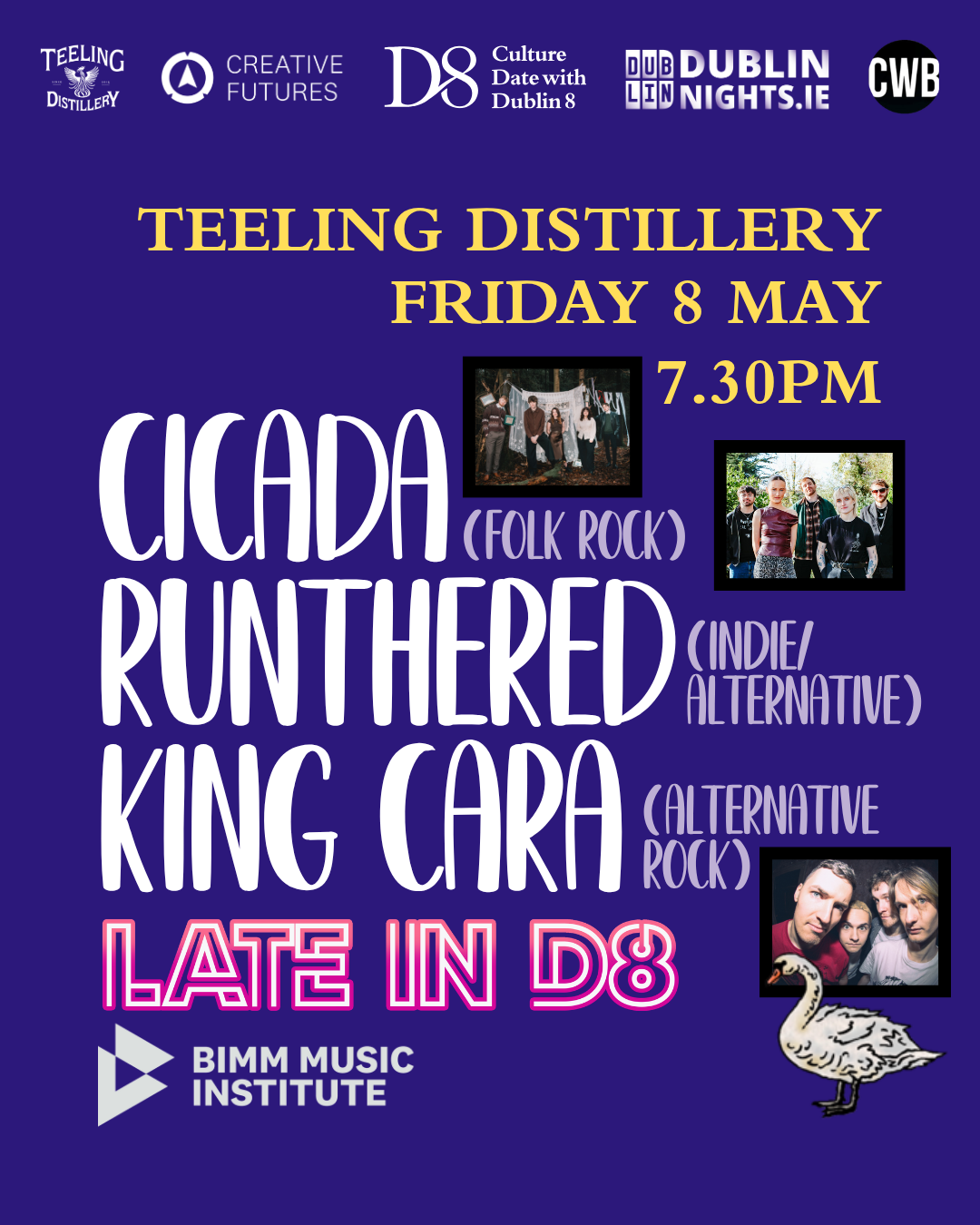 Experience the next wave of Irish music as part of Culture Date with Dublin 8’s Late in D8 programme, with a special BIMM showcase taking over Teeling Whiskey Distillery on Friday 8 May. Set against the atmospheric backdrop of one of Dublin 8’s most iconic spaces, this live event brings together three standout emerging acts from BIMM Dublin, each carving out a distinctive voice within Ireland’s evolving music scene.