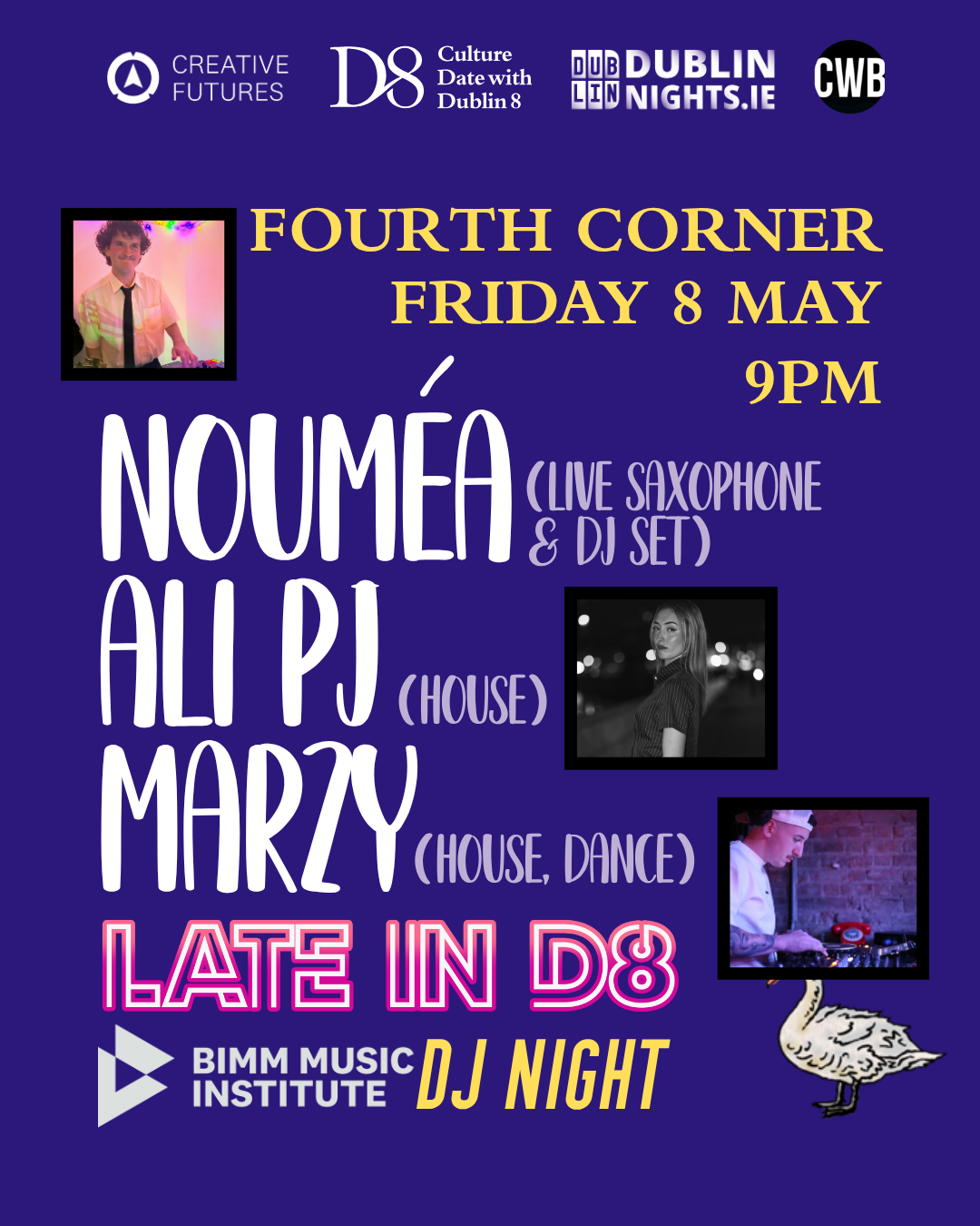 Turn up the tempo as Late in D8 moves into the night with a BIMM DJ showcase at The Fourth Corner on Friday 8 May. From 9pm until late, this club-focused line-up brings together three exciting DJs and producers from BIMM Dublin, each shaping their own sound within Dublin’s electronic music scene.